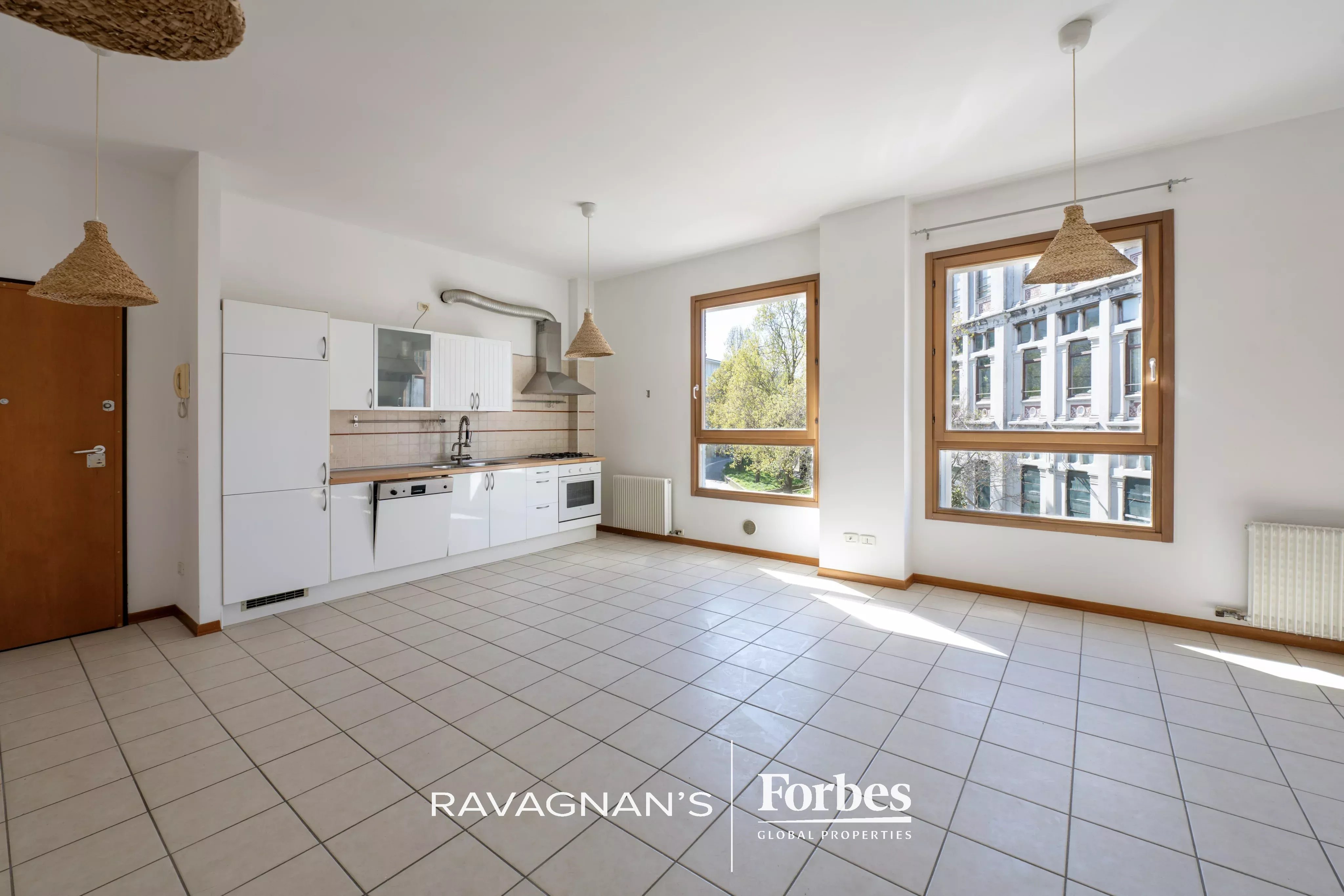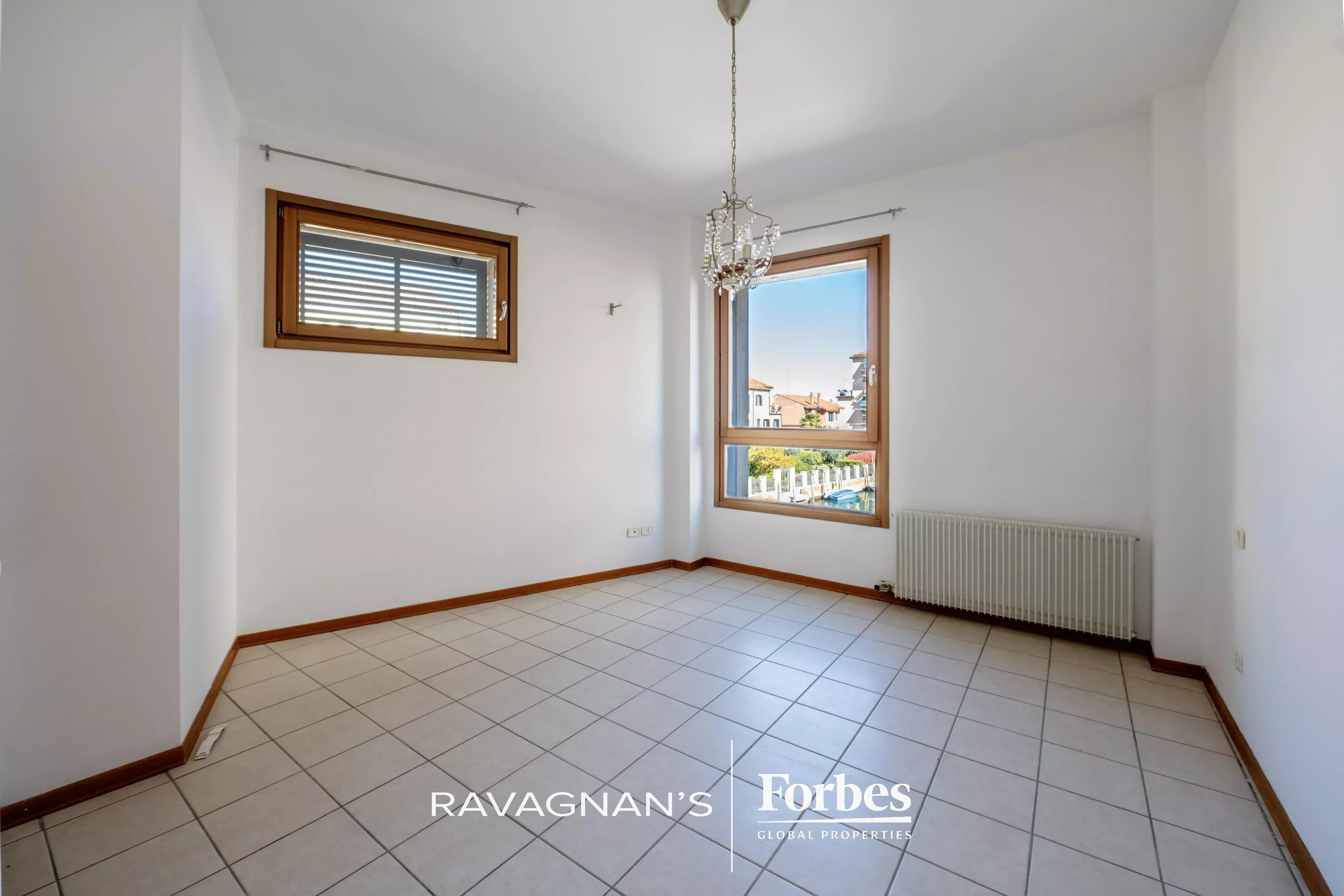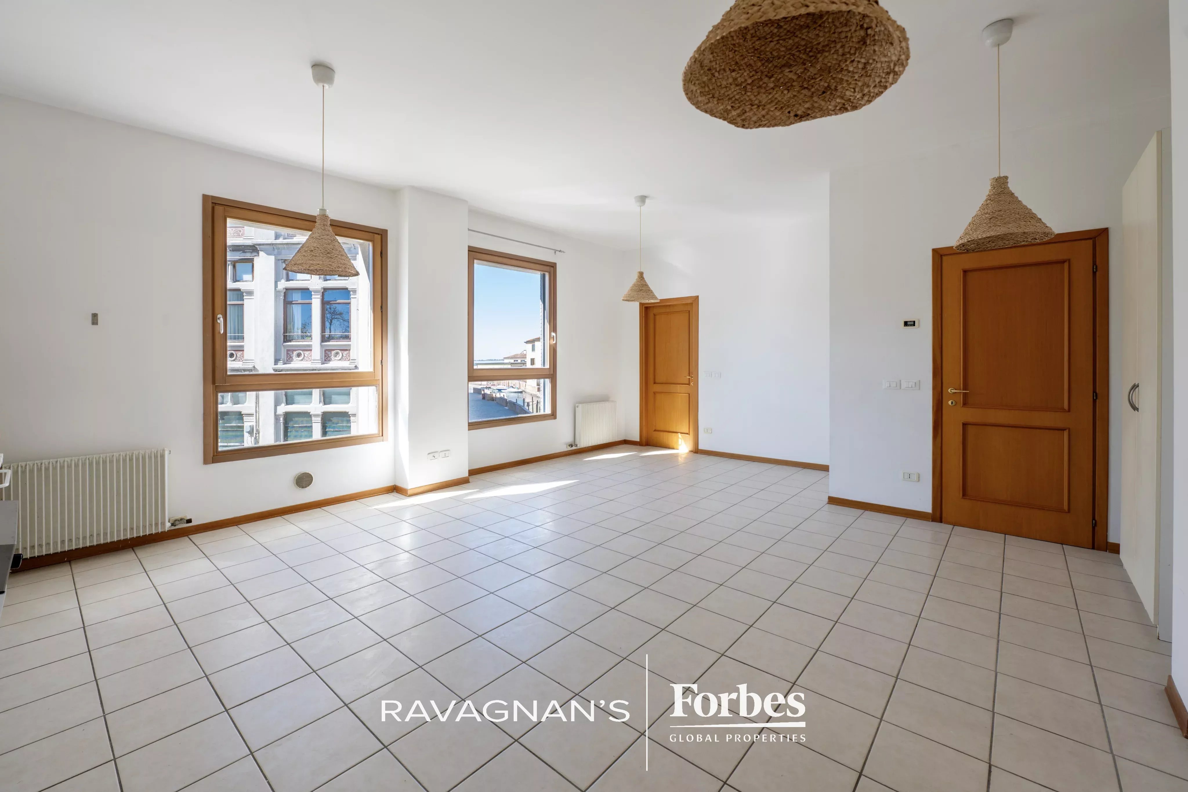Situated on the first floor of an exceptional residential complex, the property benefits from a triple exposure (South, East, North) that captures the sunlight reflecting off the lagoon, filling the interiors with a constant zenithal brightness. The apartment comprises a spacious living room with an integrated kitchen, designed as a convivial space where large windows frame the Campo, transforming the view into a living painting; two generous bedrooms, offering absolute comfort and privacy rarely found in the heart of the historic center; and a modern bathroom with a shower.