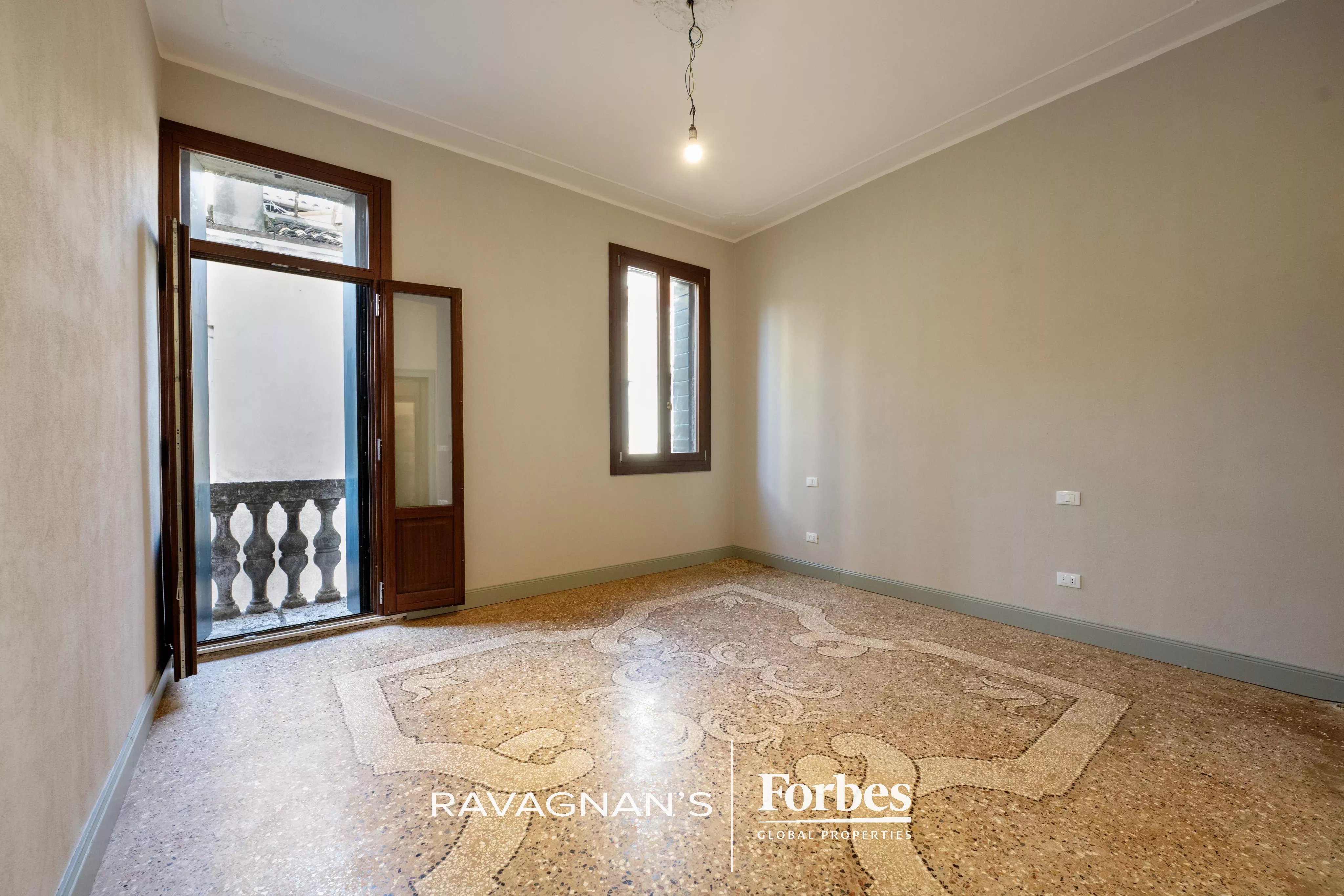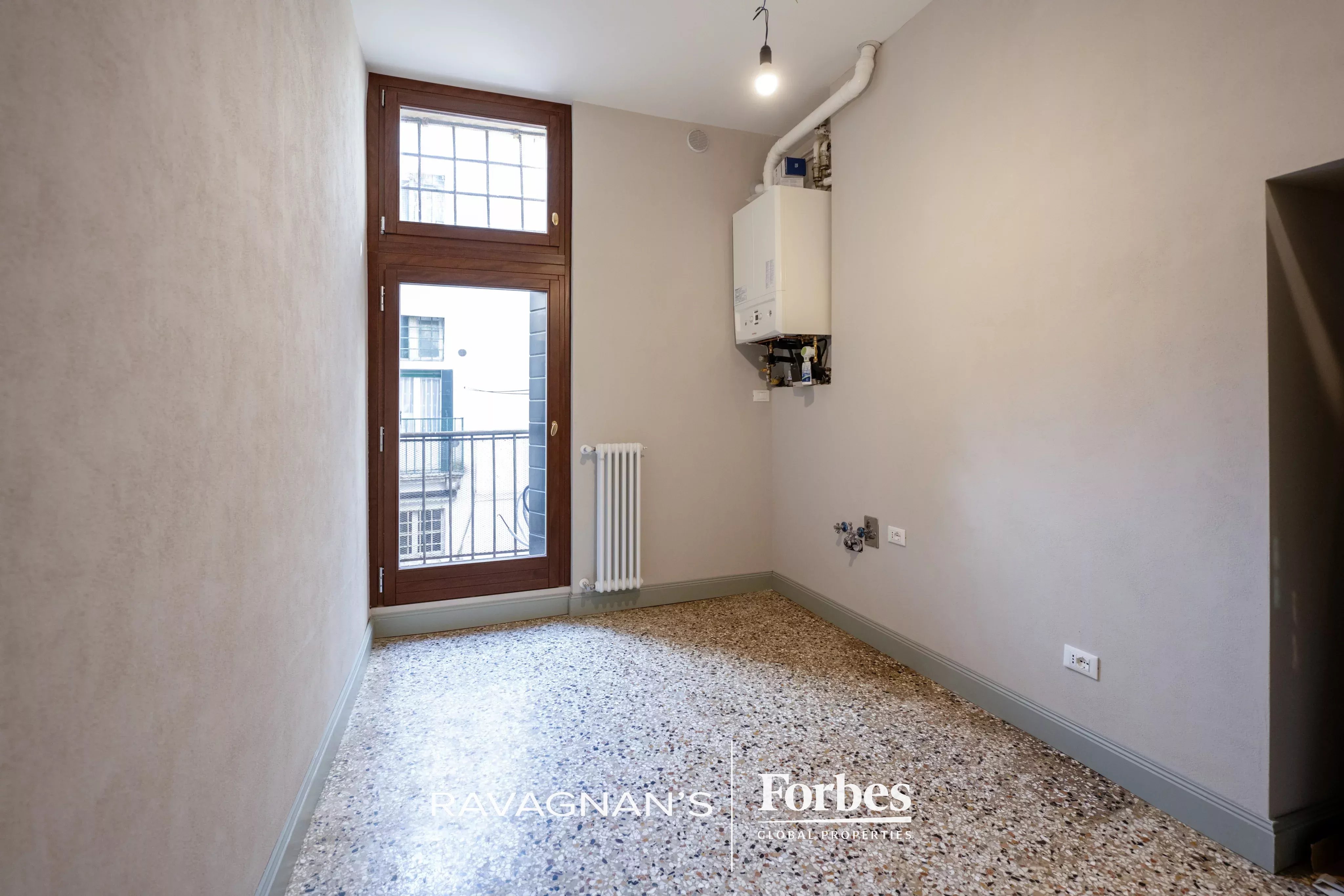 A distinctive feature of the apartment is the presence of two charming small balconies, typical of the city, adding further charm and authenticity. The interiors are enhanced by high ceilings that provide a sense of space and brightness, while the Venetian terrazzo floors, in perfect condition, represent a blend of tradition and elegance.